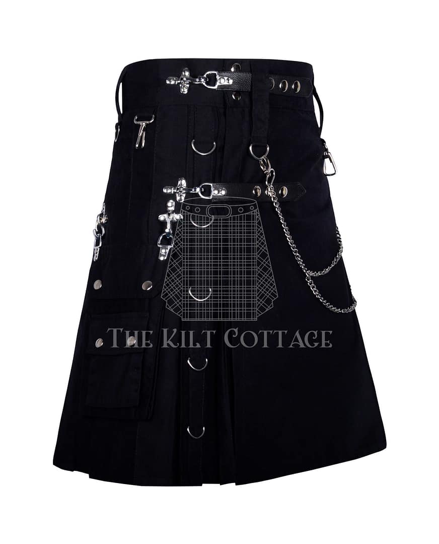 The Black Cotton Gothic Chain Utility Kilt is more than clothing—it’s a confident statement of individuality, tradition, and attitude.