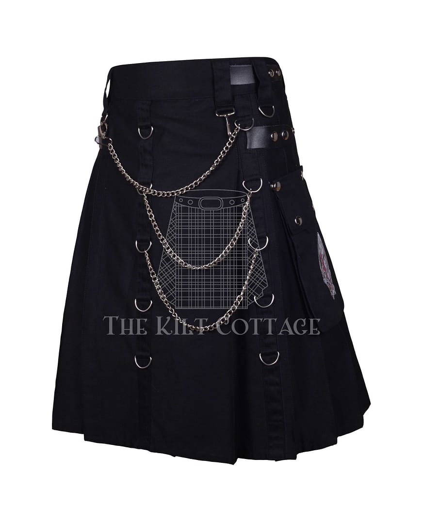 The Black Cotton Print Gothic Utility Kilt is more than just attire—it’s a confident statement of individuality, heritage, and style.