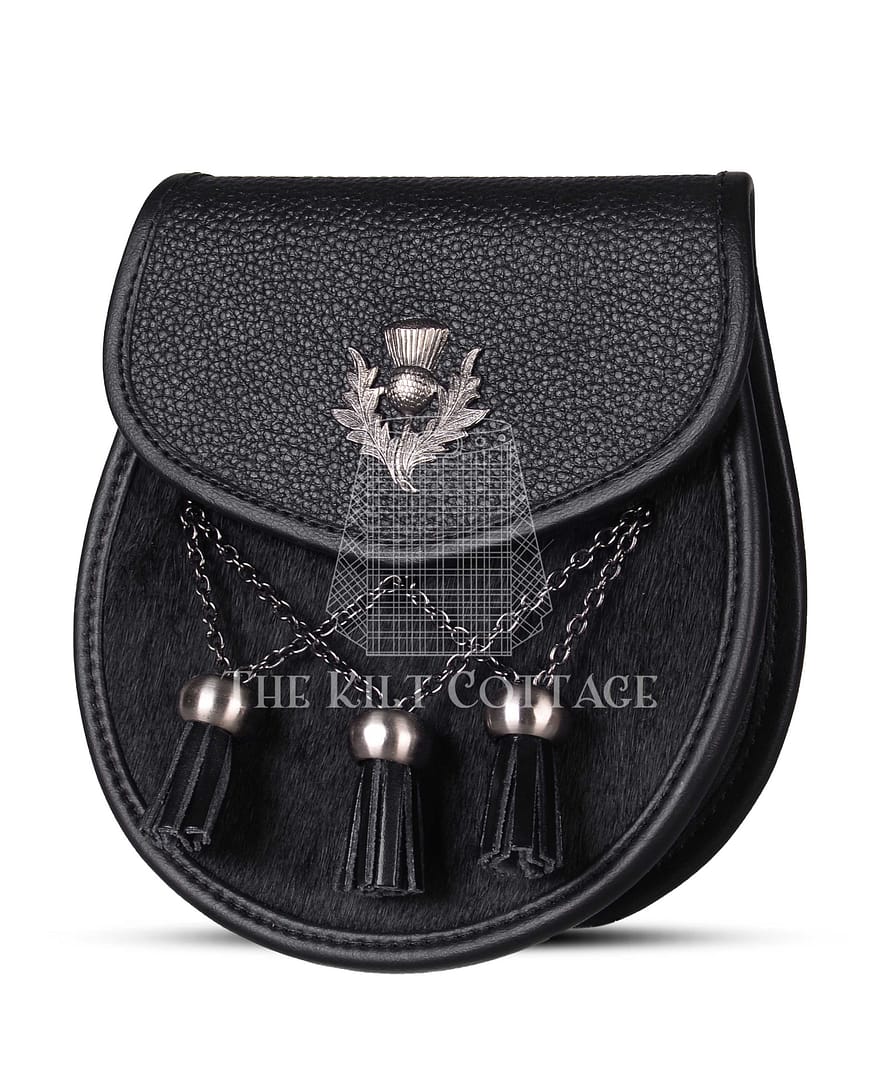 Step into timeless Highland tradition with the Black Leather Bovine Fur Cross Tassels Semi Dress Sporran—a perfect union of rugged elegance and cultural heritage. Whether you’re dressing for a formal occasion or a casual gathering, this semi-dress sporran delivers classic Scottish style with a refined touch.