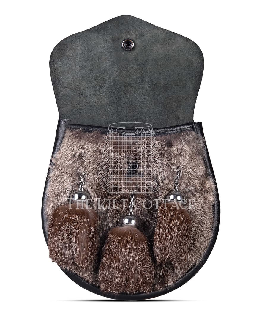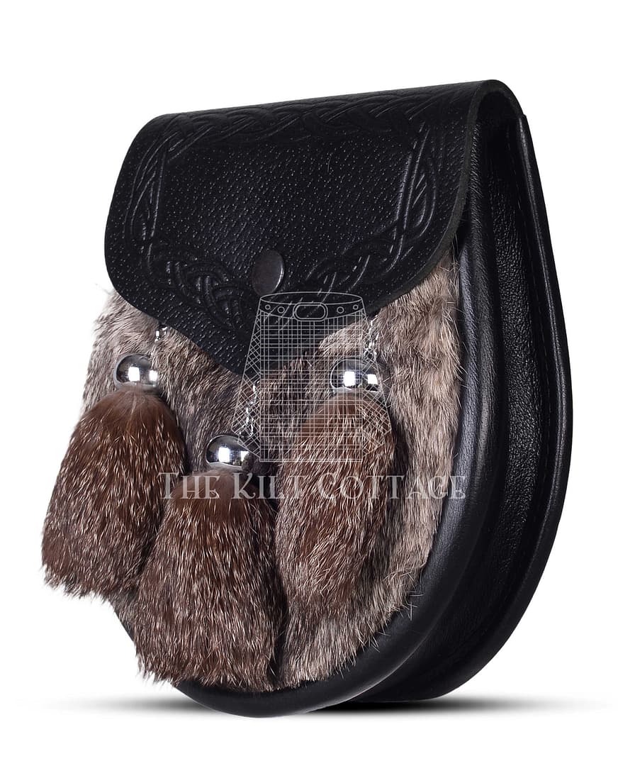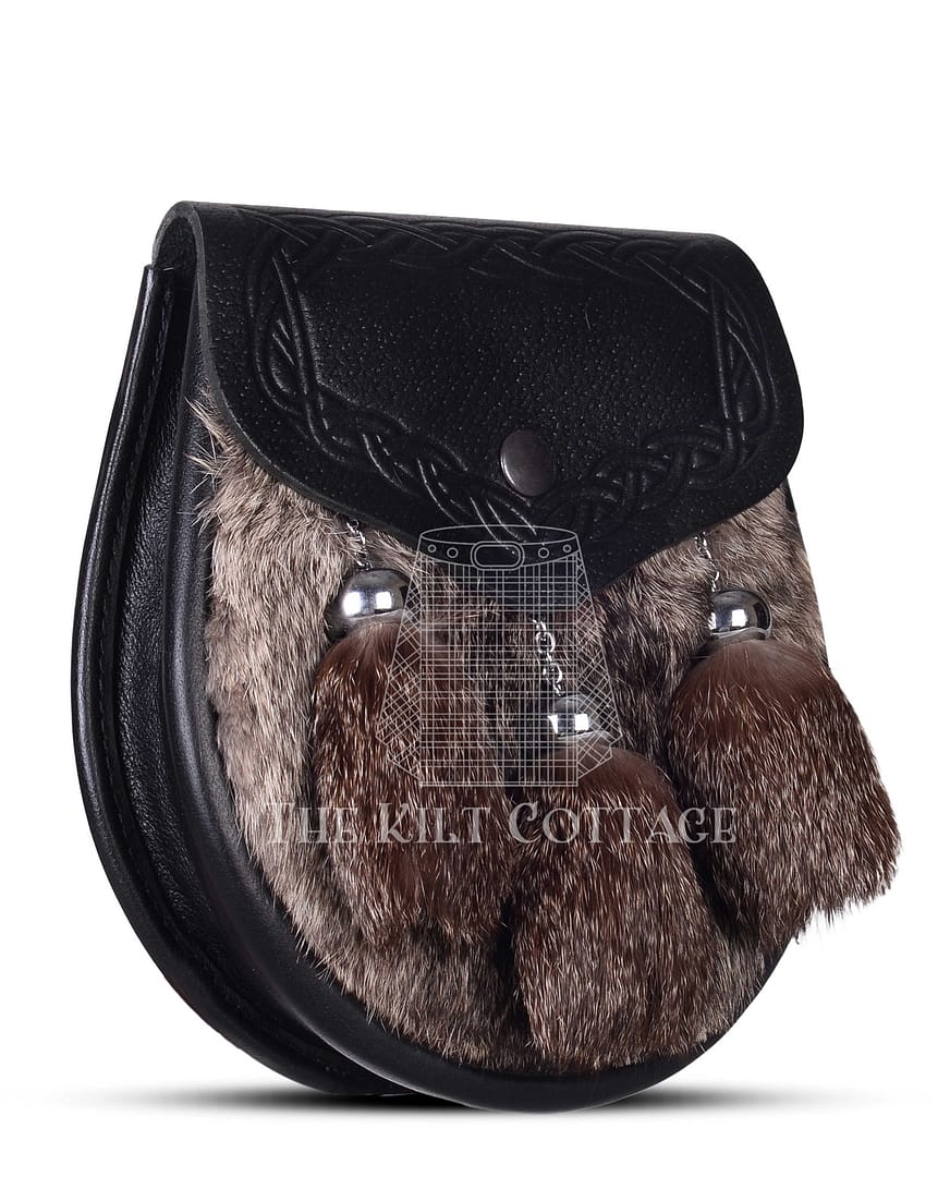 Expertly constructed from premium black leather and genuine brown rabbit fur, this sporran offers rich visual contrast and texture. The soft brown fur brings a natural warmth, while the black leather body grounds the design in traditional strength and durability. No two sporrans are exactly alike—each one showcases slight variations in the fur’s tone and pattern, making your piece truly unique.