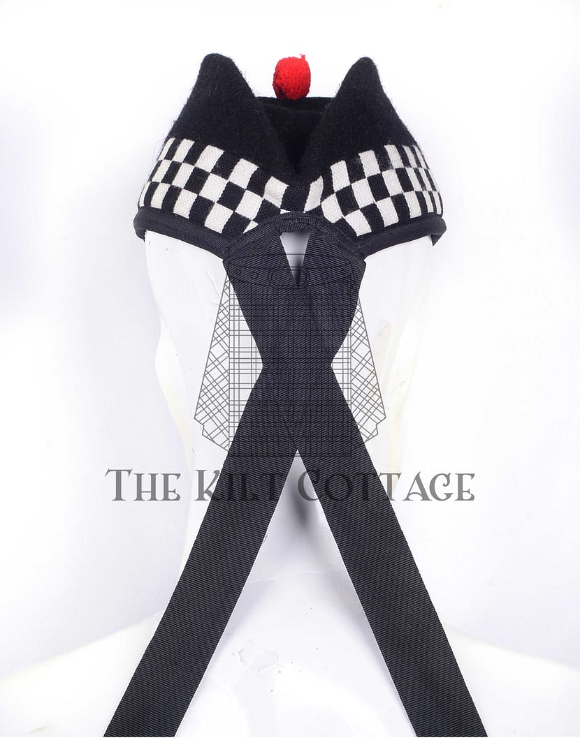 Black Wool Dark Blue & White Diced Glengarry Hat