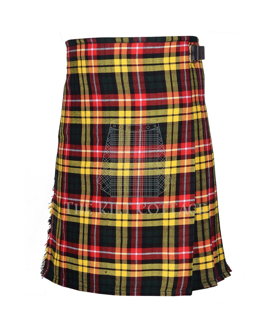 Celebrate your Scottish roots in vibrant style with the Buchanan Tartan 8 Yard Kilt. This kilt features one of the boldest and most colorful tartans in Scottish history. With a brilliant blend of red, yellow, green, and blue, the Buchanan tartan makes a striking visual statement and honors one of Scotland’s oldest clans.