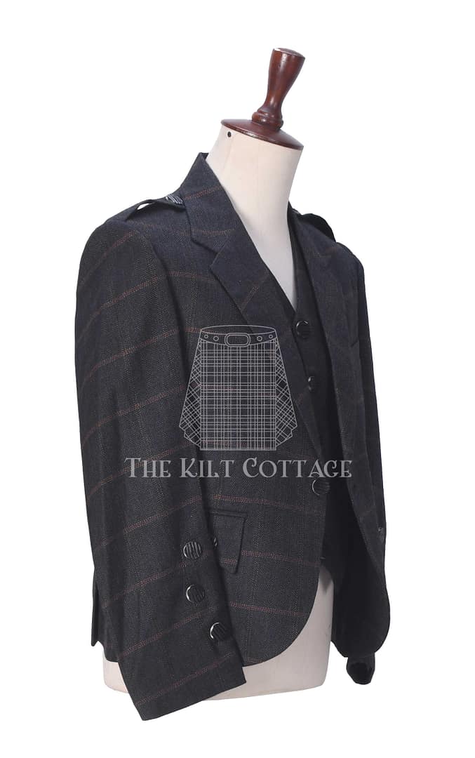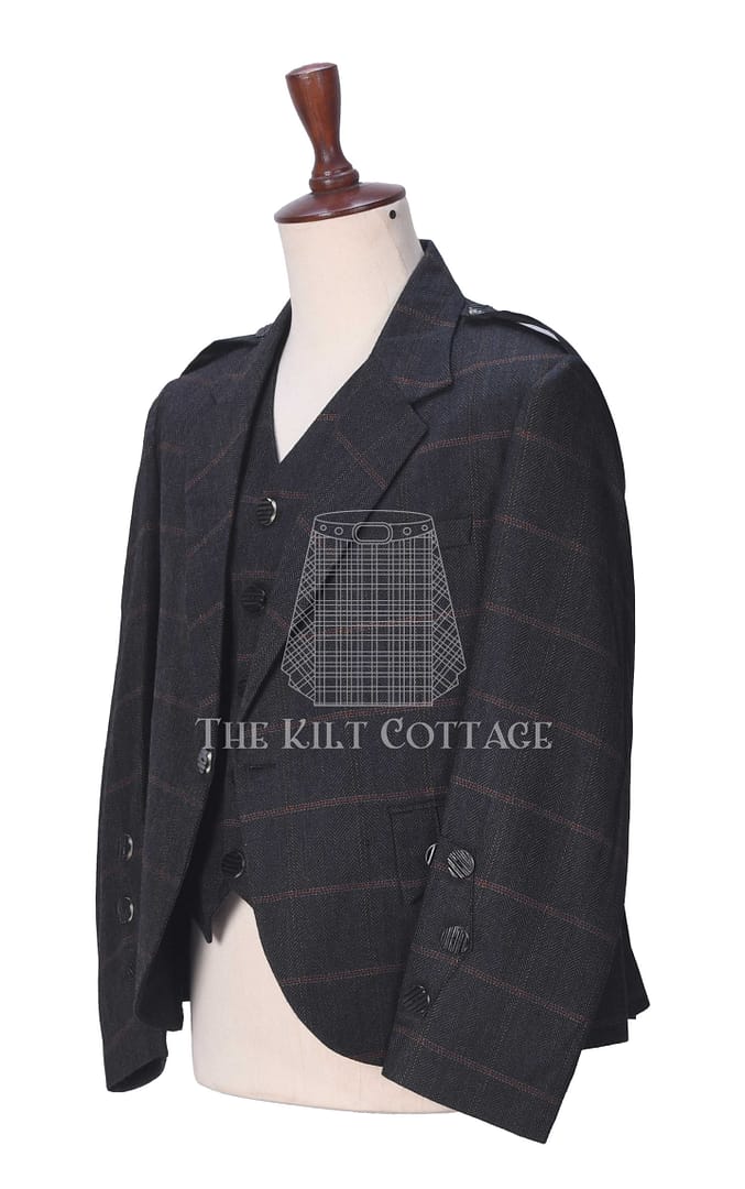 This jacket and waistcoat set offers flexibility. Pair it with a kilt for formal Highland attire or dress it down with tartan trews for smart-casual occasions. The neutral charcoal color makes it easy to mix and match, ensuring it remains a staple in your wardrobe for years.