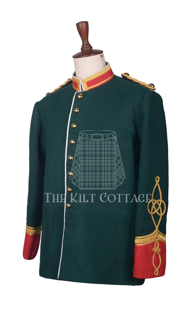 Attention to detail sets this jacket apart. From the precise stitching to the ornamental buttons and epaulettes, every element reflects expert craftsmanship and a commitment to historical accuracy. The tunic’s rich green color complements the gold accents beautifully, making a bold statement wherever you go.