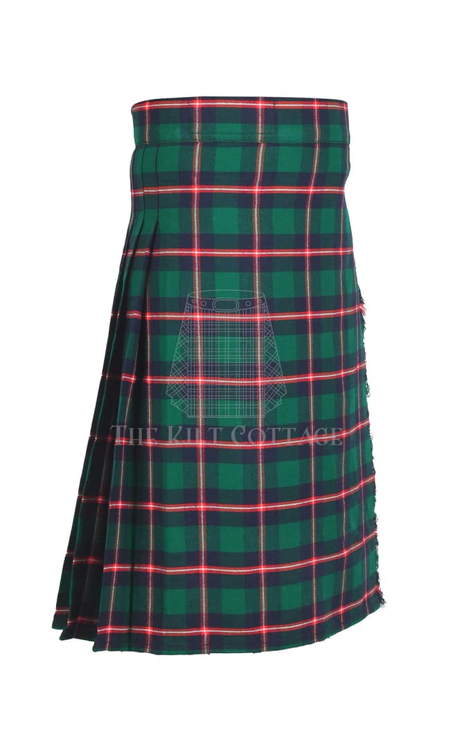 We craft this skirt from soft, breathable acrylic wool, making it lightweight and comfortable for year-round wear. The Irvine Modern tartan features a striking blend of navy blue, forest green, and crimson red in a bold plaid pattern. Its balanced color palette reflects both strength and refined taste, perfect for women who embrace tradition with confidence.