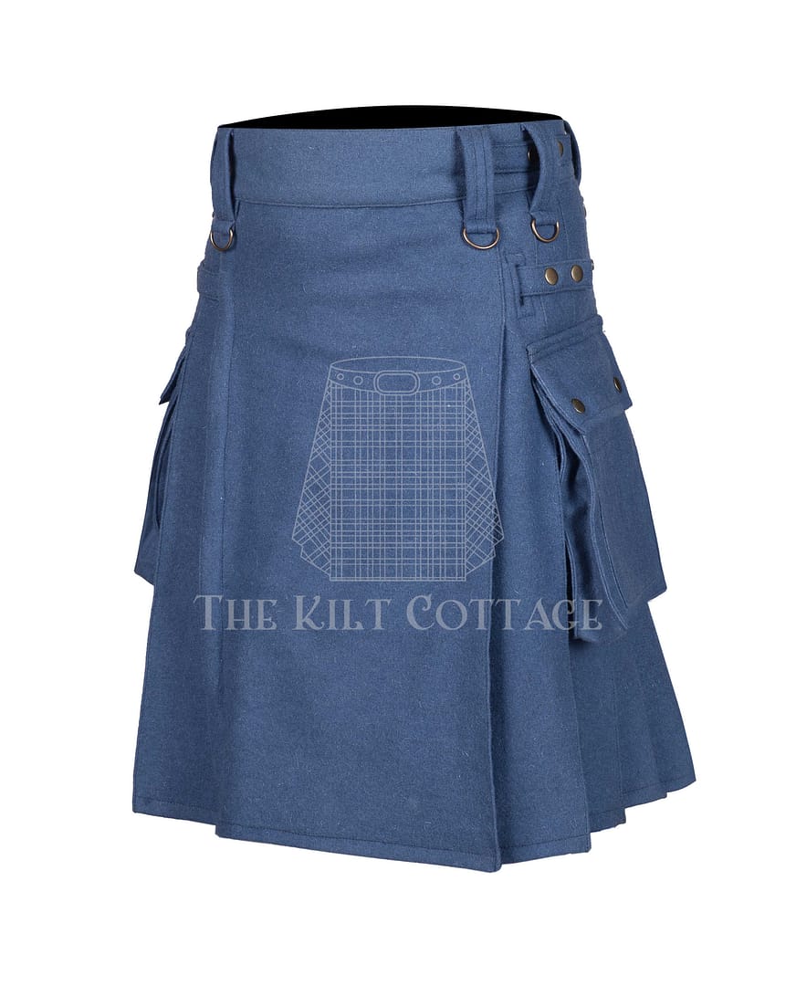 The Lovat Blue Wool Utility Kilt combines classic Scottish design with practical details, making it an essential piece for the modern kilt wearer.